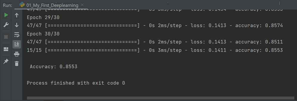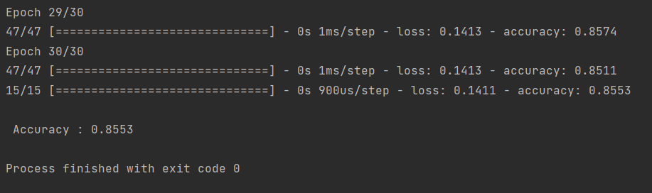 # 30개의 node와 입력값은 17개, 활성함수는 렐루(relu)를 사용하였다.